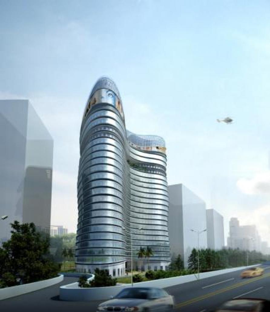 KONKA Headquarters, Shenzhen,China- China`s largest producer of TVs, radio and now mobile phones has outgrown their present headquarters and wishes to relocate to a more exposed site, with an iconic building as its showpiece. Three towers are combined into one building, surrounded by an undulating second skin on the upper floors. The building will be shared with other firms, thus separate lobbies were requested. This, plus the mild/subtropical climate made it possible to expose the three towers at the lower levels to create an open-air main lobby. The KONKA skylobby is located on the 19th floor, a triple-height space with spectacular views over the north of Shenzhen. Project is pending.