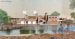 Based on the future needs of the village population and the possible construction methods, several significant buildings have been designed including a school, a training centre, low cost housing, street-side retail outlets, a sizeable chilled storage facility and a small business centre based around aquaculture.