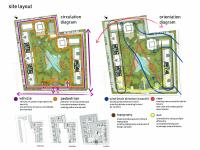 For emphasizing low-rise structuring 40 percentage of total houses are located on horizontal blocks which apart form towers. One of the principal of layout design is providing main landscape garden view without any vehicle entrances to the all of the major part of houses in horizontal blocks.