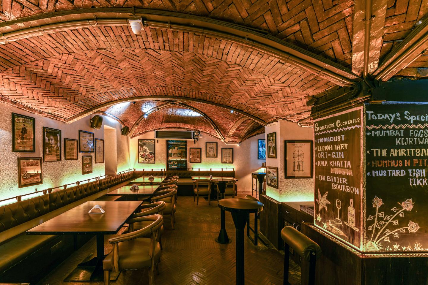 Garage Inc. is a modern style café located in Colaba, Mumbai. It has been designed by refurbishing an existing heritage site. The raw textures and appeal of the whole café has been kept and mind. The café design is in sync with the whole city fabric in its raw, archaic and rustic feel. The 28-year-old fresco, ceiling, and flooring have been left untouched to retain the old world charm, the ambiance speaks loud and clear about the café being a relaxing space. Also, the café has a certain industrial feel attached to its design. The idea of the café was to create the space that has an American vibe attached to it and at the same time preserve the beautiful heritage site with unique Indian architectural elements such as the curved brick roofing and the terracotta tile work on the floor. The most enthralling idea was to use natural tones of brown. Natural shades of brown have been used that prove to be a versatile hue with its wide usage in American as well as Indian indigenous architecture. The café’s design is replete with rustic, industrial and out of the box design elements that complement the nostalgic vibe of the whole space. Be it the hipped roof ceiling with unfinished paintings or the terracotta flooring the café is designed to remodel the aura of the former property. The roofing and flooring have been preserved in its purest form and walls have an unfinished fish scaled texture adorned with various wall hangings depicting inventions and discoveries made in the past.