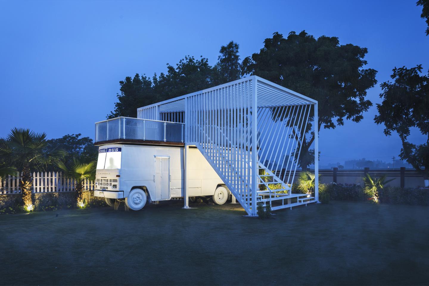 The structure is used as a breakout and a congregation space for both formal and informal events of the school. The bond shared by the school bus and the school has thus found a new meaning. A play area, an open air theater, a gallery and above all a symbol that inculcates the importance of reuse and up-cycling in the students so their vision for tomorrow can be driven towards a sustainable future.