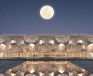 The mosque design explores the duality between light and built form to create a spiritual experiential space. The multi-layered geometrical form filters the harsh light into the prayer hall. Light bounces off the doubly curved surfaces and filters through the “mashrabiya” apertures based on Islamic geometrical principles.