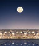 Sustainable Technologies : Cooling water ponds form an important feature of passive cooling strategies, in addition to multi-layered minimal pre-cast surfaces embedded with Islamic geometric patterns filtering the harsh desert sun.