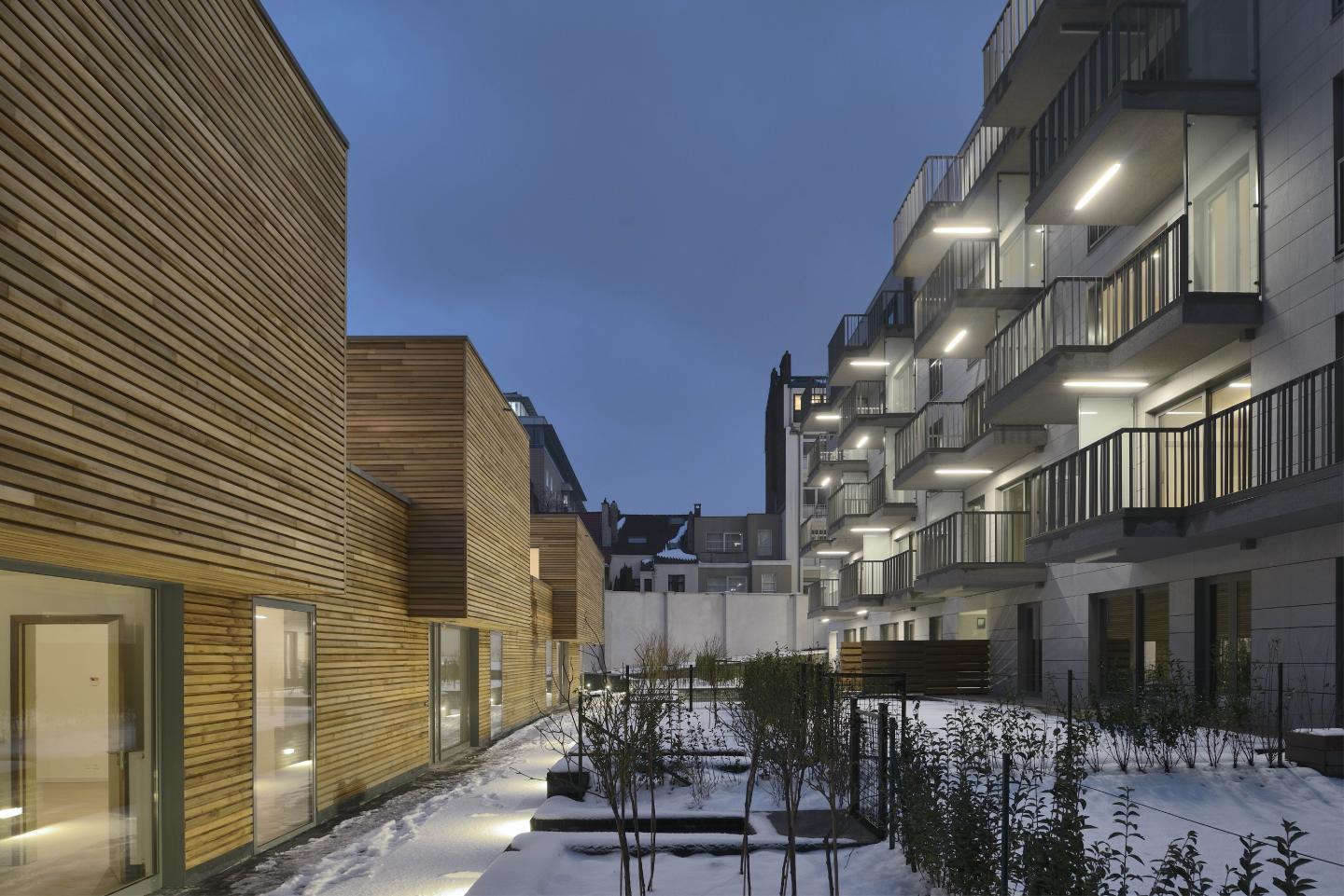 Program : Housing block accomodating 27 apartments and 4 interior courtyard houses