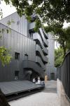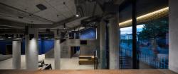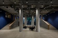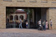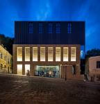 The entry portal establishes both physical and visual communication between the street and the lobby, which is a venue for various events both during the day and in the evening. The portal transmits events from one space into the other, with theatre guests and pedestrians turning into actors and spectators, and vice versa, depending on the view point.