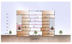 Brick screens envelope the built spaces externally mitigating sound from the roads as well as reducing heat gain in response to the climate. Average temperatures are in excess of 30°C for 8 months of the year in this location.