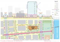 • Formation of base block to create an active retail frontage with a grand plaza on the south side.