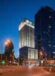 The site of a new hotel is located on Lesi Ukrainki boulevard, characterized by two dominant scales: that of soviet nine-storeyed houses flanking the boulevard and that of newly-constructed thirty-three-storeyed office towers.