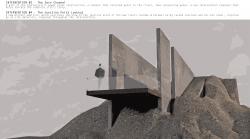 A walking trail, which follows the trace of the pre-existing railway, stitches existing fragments as well as new minimal interventions, reducing materials to those on site; rusted concrete plus cor-ten steel and glass, inspired by the industrial ruins on site.