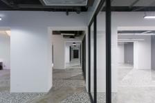 The existing SGG building is support by a number of wide concrete columns (800mm*400mm). How to use these densely placed columns to create a clean and continuous space became the challenge for architect. The disadvantage would be an advantage. “Why not to take the dimension of these columns to create something new?” The architect Yinian Dou came up with the idea of “slicing the space”: linking wide columns to form thick walls to divide the space. By opening up some walls and letting the space flow through, the spatial depth is created.