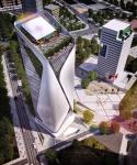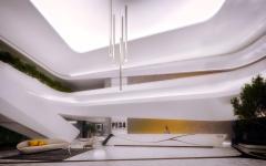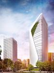 The futuristic design evokes concepts such as innovation and sustainability with the intention of creating a unique building. It stands with a clean and elegant skin and glass facade that opens into vertical gardens on some levels.