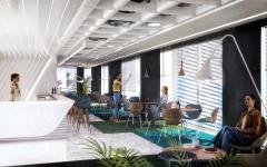 Easy urban accessibility and bicycle parking. Access square with fountains, vegetation and relaxation areas. Flexible and comfortable diaphanous working spaces. Bistro and gardens to take breaks and rest. Ideal Lighting and thermal comfort to enhance work productivity. Fitness center to promote healthy living and a Roof top bar for social gatherings after the work day.