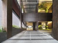 A lofty elevated arrival deck was designed with mirror finished ceilings to create the illusion of grandness despite the compact site. A seamless pedestrian linkway connects to Orchard Road, strategically lined with new F&B offerings. The distinct façade pattern is further expressed in the pavement pattern as well as the trellis of this linkway facilitating pedestrian flow and strengthening the new hotel presence.