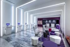 Yotel Singapore is the brand’s first micro-hotel in Asia. The architect’s creative interpretation of the brief reinforces the brand’s innovative approach. Rising out of a discreet site within Singapore’s famous Orchard Road shopping district, the slim 30-storey tower was crafted to stand out with its striking textured glass and aluminium façade juxtaposed on an animated podium. Key to the success of the development is the designer’s interpretation of distinct affordable luxury, inspired by first-class airline travel, imbuing a high level of quality and comfort with curated high-tech services despite limited space.