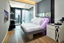 The design of Yotel puts long-term sustainability as a key consideration. At concept stage, discussions with green building specialists established optimum sustainable performance goals integral to the hotel’s requirements.The project was awarded a BCA Green Mark Gold rating for its environmental features. To achieve energy efficiency, the building envelope was studied and developed to reduce heat gain; efficient systems including air-conditioning, mechanical ventilation, lighting, hot-water and vertical transportation were carefully reviewed before implementation. Certified building materials were selected for their positive effects on indoor air quality and the environment.