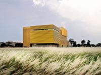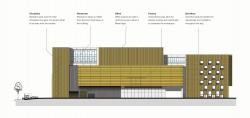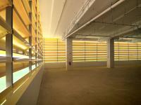 Each box, reflecting the different stages of production, is identified by the specific needs that their individual spaces serve. Factory production and warehouse spaces are clad in yellow horizontal aluminium louvres, flooding spaces with the maximum amount of natural ventilation and light while remaining shaded from the sun and protected from rain. Deep recesses between boxes create intuitive points of entry and exit for each box while allowing natural light to penetrate deeper into the floor plate.