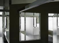 Different layers of frosted glass and light ocher wall parts were pieced together into a complete rectangular wall with the same materials in order to maintain the integrity, at the same time to obstruct southerly sunshine. With central rotating mirror door and mirrored stainless steels frame, the space can reflect lights and lines of sights from different angles, and also improved natural light for deeper parts of the office. In all, it brought experimental characteristic stimulants into the former solidified space and enhanced brightness for the environment. This space tried to encourage the users to a state of mild discomfort, by allowing any vivid activities at any time, to gain an emotional tension to feel and experience inner prosperity.