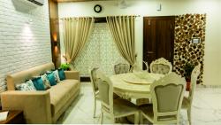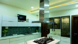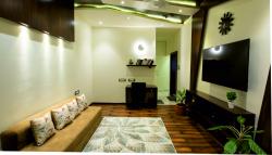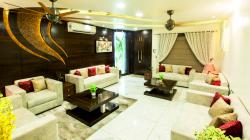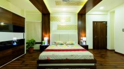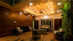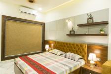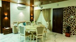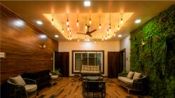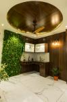 Master Bedroom includes two separate bathrooms and two different dressing rooms and the highlight of this room a cozy attached garden with a water body., keeping in mind the requirement of both the delegates. Dining and living area, are attached to the beautiful small garden and a powder room. White exposed bricks and natural wooden ceiling’s striking shape provides a fusion look and break the monotony of smooth finishes.