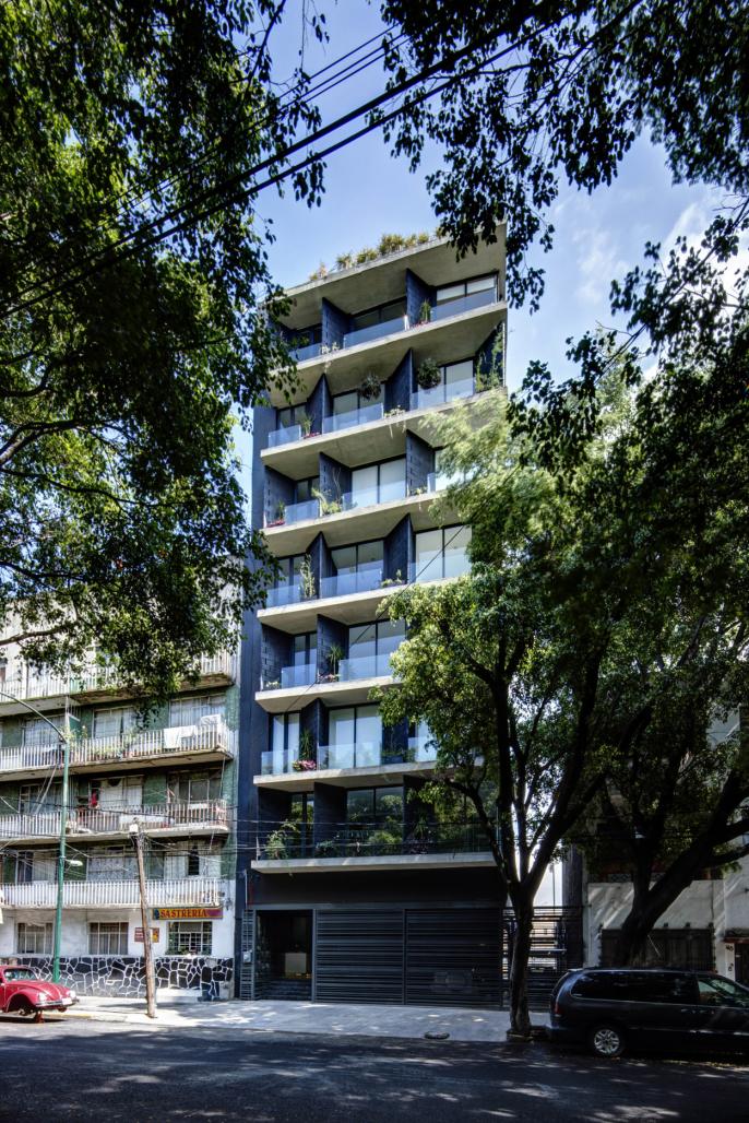 This project received an honorable mention in the Mexico’s city Biennial Architecture, it is located in a land with two opposite roads, Viaducto Miguel Alemán and Obrero Mundial street. For the final volume of the project, the team of CRAFT Arquitectos started from two premises: the first was to break with the frontal continuity generated by the facades of the buildings of the primary avenue and the second, to create 14 apartments of double orientation. In this way the project is separated from the east adjoining, leaving a courtyard that visually connects the two streets and generates a third facade in the volume.