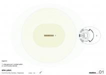 In the non-descript fringes of the town of Gajraula, the proposed Community Centre is a powerfully visual alliance of space, light and object. The design develops from an imagination of an unfolded configuration of a cricket ball, an acknowledged inspiration derived from the abutting cricket pitch it is situated in. Conceptually, it is generative of a unique profile and volumetrically defined form – a building with no elevations if to be read in the conventional sense.