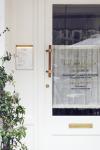 On the white facade, the name « Holiday » is written with black ink in a graphic way just like in a coffee shop. Attired with brass details as inside, the facade is composed with a sash-window and a transparent glass door on which are written in golden letters the information useful to the client. The outside gives an atmosphere as rich as the inside.