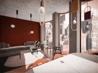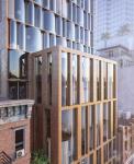 The building is horizontally divided into two parts. The lower one maintaining an old traditional New York facades with brick walls. And upper one is fully glassed which is replicate with contemporary glass skyscrapers and due to the original glazing: windows with bent, curved glass, it provides a perfect window view on a Hell’s Kitchen district.