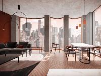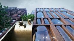 The Snail Apartments, a 10-storey building in Chelsey, New York, and with 30 apartments: studios, single and multi-level apartments flooded with light through floor-to-ceiling windows.
