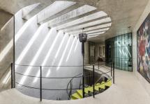 The new structure becomes a monolithic interior box with a semicircular perforation strategically placed to generate natural lighting and ventilation.