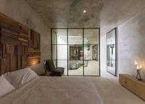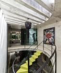 Walls and ceilings are made of polished gray concrete as well as the floor of the ground floor where the same polished finish is preserved, while in the upper floor the concrete is hammered creating a texture that gives warmth to the space.