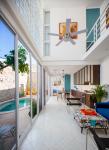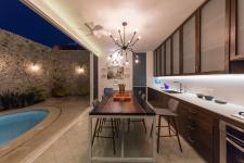 The rigidity of the architectural plant’s composition breaks with the outer areas using organic elements that provide fluidity to the space. The elliptical pool as the central element of the patio works as a temperature leveler, as the wind passes over the water and the interior of the house is cooled.