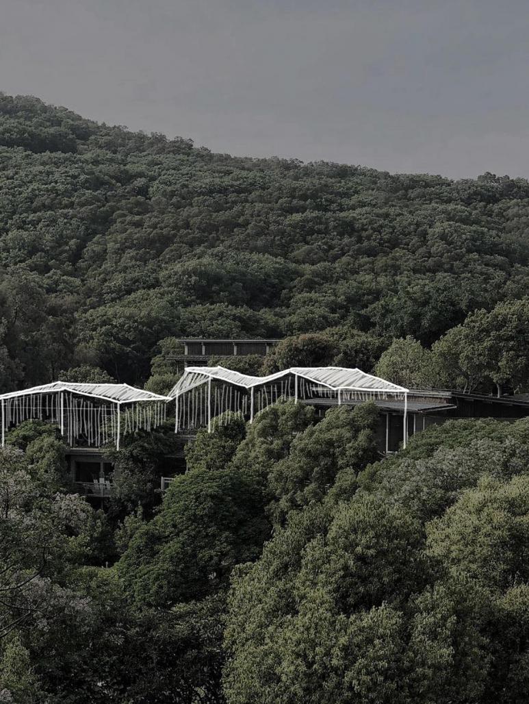 Tea-Talks House is located between 250-300m above the sea level, south-west to the state 5A scenic resort, Qingyuan Mountain, which is renowned as "An natural oxygen bar" with its forests and fountains. This project is renovated from an old tea factory founded in 80s last century. Atelier RIGHT HUB is the contracted party to be responsible for the entire design scheme, including overall planning, architecture, exterior and interior design. The tea fields are organically merged into the Qingyuan Mountain shape, as they were growing harmoniously together. This minimizes the influence of the tea house architecture to the natural mountain, as an outsider, instead, the waving roofs reflect to the sloping mountain pleasantly. Meanwhile, the tea rooms and guest rooms are designed with ideal space, the artificial factors are minimized while the feel of “close to nature” is fully taken into account, as if you are living in the nature. All 18 suites are designed with private passage and balcony, with windows facing the mountain valley. Room-design features ZEN style with its undecorated empty space. Looking through the full-size glass window, the breath-taking mountain views are displayed without any conservation. It's needless to step out of the room to enjoy the wonderful mountain landscape.