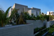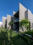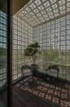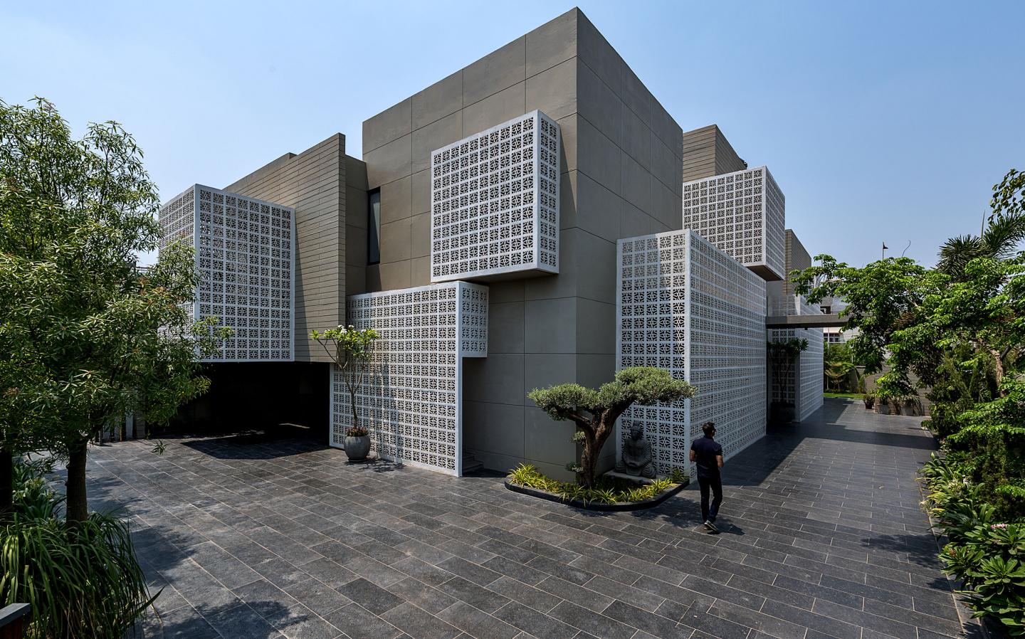 Patterned screens derived from traditional Indian architecture and the famous Lucknow 'chikan' embroidery sheath outdoor seating areas for each room on the south, west and east sides. These screens provide shelter from the sun, create different light patterns throughout the day and mitigate traffic noise from the busy arterial road on the southern side.