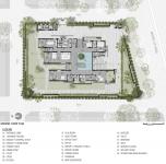 The extensive requirements of the 6 bedroom house are interspersed with sheltered open terraces and landscaped gardens around a 2 floor high naturally ventilated courtyard.