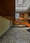 Built almost entirely in raw concrete, a natural palette of sandstone and wood with muted colors, vivid Indian art and landscape are brought together in different compositions in each of the internal volumes.