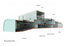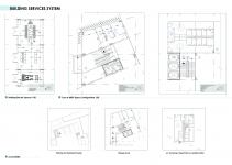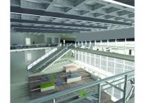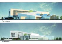 The structure systems used in the project are a flat slab, waffle slab, and shell structure. The flat slab thickness is span/32 and it spans up to 12 meters. Therefore it is used in the spaces that have short spans such as the administration. The waffle slab is a two-way joint concrete system with 1-meter slab panels grid that spans up to 16 meters. It is used in the open offices and workshops spaces on the upper floors to give a free-column space for better visual value. The RC shell structure spans up to 40 meters and it is used in the public spine for large spans such as the auditorium, the reception hall and the library reading hall. The facades used three different treatments: Glazed curtain wall, GRC cladding, and exterior paint. The curtain walls are supported through spider hardware and glass fins. The grid of the façade glazing is divided into a visionary glass and a spandrel glass with regular horizontal and vertical lines intersected together with respecting the human vision inside the spaces. The thermal insulated GRC cladding is used in the facades exposed to sunlight in order to decrease the heat gain in the spaces.