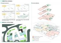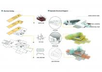 The design started with having two main masses representing the two features of nature which are the seaside and the landslide. Then, adding a courtyard to create an inner view and provide vegetation. Afterward, lowering the north-western side of the building to catch the prevailing wind and increase the height of the building from the opposite side to allow the courtyard as well as some parts of the building to be shaded. finally, using the shell structure in the main building public spine (that connects the auditorium to the library reading hall passing by the entrance reception hall) to provide natural daylight from the upper windows between the shells.