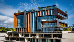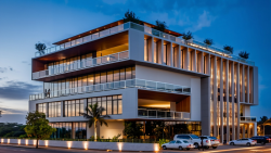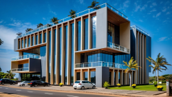 The project is located in Maputo, the capital city of Mozambique, an African country. Maputo is a port city in the Indian Ocean and its economy has developed around this port. The estimated population in 1997 was 966,837. There is a cliff-like slope in front of the land, and flats were designed on this steep slope by making 3 basement floors. These 3-storey basement flats have ocean views from all their rooms. The back of the flats is designed as a closed car park. After the ground floor on the upper street level, there are 3 floors and a penthouse in the building. The façade architecture of the building is defined by the sustainability of the façade. The relationship between the different floors is defined by the repetition of vertical elements on the façade and the glass façade separating the floors between these vertical elements. There are 3 basement floors which has view to ocean. These basement floor's terraces have wood canopy for creating privacy. Street facade and facade of ocean have cantilever frames which emphasize main facades. The 1st, 2nd and 3rd floors have balconies. The penthouse located on the last floor enjoys the ocean view with a very large terrace area in front of it. The total construction area of the project is 9600 square meters. The ground floor is 808 square meters and the total residential area is 4200 square meters. There are 26 flats of different sizes in total. The indoor car park has a capacity of 36 vehicles. There is an open parking area for 12 vehicles at the street level.