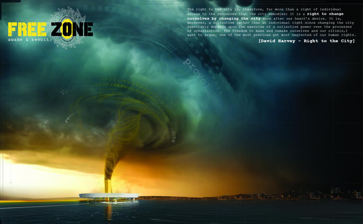 FREEZONE are used by people who are part of a continuously changing society. FREEZONES could remake society.Society that consist in a hierarchy, policy and economy could not be independent to make decitions. So this freezone contain a heterarchical regulation. People all could contirbute the FREEZON as an ACTIVE INPUT. Differentiation brings society freedom . Heterarchical system is using in FREEZONE, in the hierarchical city. It is a space that creates DISORDER in ORDER. All people, groups, non-govermental organizations could give a speech in Freezone. There are lots of Speaker’s Corners for people who has a word to say in totally freely way. Everybody could make a discussion on centre of frezone in Free Speech Forum. It is locatred on the middle of aegean sea- İzmir gulf. Thus it is visible from all over the city and invites people. Not only speeches but also, the ideas and knowledge produce in Freezone. It is a cenre for awaking, questioning and revolting.