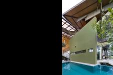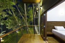 Large portion of the living area has been designed to experience the nature and the wild life, Monkeys, Squirrels, Birds, Dragon flies & Butterflies during the day time & Fire Flies during the night time. The fresh air blowing across the paddy fields, help to reduce the room temperature by 3° C with passive & articulated cross ventilation across the property. Since the garden space at lower level, upper level turfed roof garden created to link up with the vast paddy fields with connecting greater landscape & greenery.