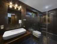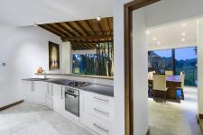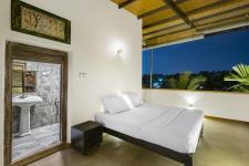 The complete white interior enhance the spaciousness with timber, & black iron railings with rough cementish floor finish harmonizing with the green landscape. Rugged textured walls applied with “Humbas mati” (fine Ant-hill soil on water base) is designed to hide Visitor’s staircase which straight connection from the main entry path avoiding almost all the rest of the living spaces to ensure the maximum privacy. This house can considered as a unique completely an open experience by total cutting off the neighborhood with the blind wall is one of the best Eco- House of the town.
