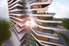 With its avant-garde proposals resulting from the fusion of organic forms from nature, rigorous studies on the urban context, and the inclusion of social and cultural context within its own environment and design concepts, the design of each space is different and each is capable of creating different sensations to users. In that sense, the overlapping slabs, rotated between them and separated on the outside, which make up the skyscraper, are the terraces that seem to be in different plane, dancing in the windy constant movement.