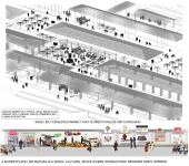 "Unearthing Gold at Mapusa Market, Goa " aims at transforming a monotonous market into a fusion of market with buzzing multi functional entertainment space , exhibition space for traditional Goan goods ,cafes for leisure. The fusion of modern with traditional Goan architecture welcomes the users. The design proposal aims at converting a day market to a fully functional 24/7 night market and thus promoting the value of the historical market as a major tourist attraction . The existing shortcomings of sufficient parking, loading and unloading spaces, green open areas and waste management have been resolved . Use of recreational spaces to de- congest the market with an effective design process to eliminate the existing collision of vehicles with pedestrian walkways. The straight linear blocks are broken into a channelized fluid form along with adequate circulation spaces that attracts the user from the entrance. The lack of infrastructure and hygiene for the temporary vendors occupying the streets have been replaced for a skilled atmosphere. Existing shopkeepers are allocated space along the periphery and at the center platforms with storage for minor vendors . The entrance blocks each have two courtyards so people on the ground floor have sufficient light. Outlets for commercial goods are demarked on the first floor and perishable goods on the ground floor. The market blocks have clear alleys or clean cut circulation due to grid planning. The solid waste that is collected on site will be converted to bio-gas and manure while grey water is harvested into a percolation pit. The Mapusa market cannot be substituted effectively by the mall culture or E- commerce, thus the design has been modernized to meet the needs of all age groups and modern trends. The market is only a shopping destination but also a hub of social interaction, thus all proposed activities aim at bringing people bond with each other. Even for someone who does not wish to necessarily shop, the activities still holds an attraction about the market, based on its sheer mood of festivity and vibrancy. All the functions are visually connected to each other and aims at converting a maze like confusing market into a multi functional leisure space.