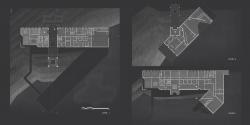 Thus, the journey starts from the landscape while walking to the building, the museum gate is visible from far away. Users rise up through the stairs to the building, when they reach they see museum gate in the center, also they can see the end of the journey through the skylight open to below (A). Then they go through the bridge which overlooks the open air museum below, and the mountains from the sides. (I) As they enter the museum,(C) the journey start at level 2 and end at level 0 by descending gradually. Inside the museum, the rooms are in sequenced controlled order but with adequate options. It starts from the 3D sensory room, to the terrace, then to the natural room which overlooks the mountain that is close to the building (E). The different rooms are divided by transitional zones which focus on light, such as (D,F). When users reach level 0 they reach the special collection (G), which includes important sculptures in chambers, its design is inspired from the chamber tombs of Madain Saleh, the last space display few more pieces that are open by the skylight (H). However, this is not the end, because after that users can go out to the open air museum or to Madain Saleh.