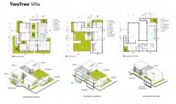 In Two Tree project by focusing on local architecture and mixing it with modern architecture, we tried to renovate the identity of Iranian architecture by creating courtyard to have a green view (two walnut trees) from various sides beside having natural light. The glassy bridge connects two important part of the house that has a direct view of the courtyard and two preserved trees. In addition, beside these green views, designing a roof garden helped us to increase the human relationship with people surrounding environment.