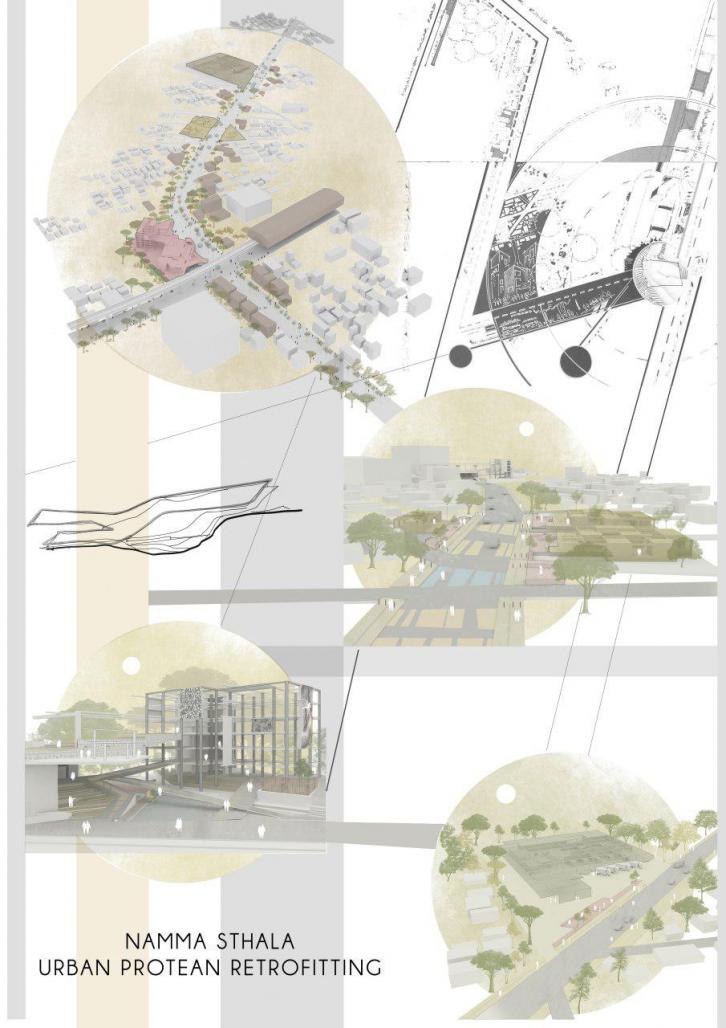 URBAN PROTEAN RETROFITTING talks about giving spaces for functions that are hidden in plain sight and also functions which are unrecognized and not given importance to, taking into consideration the stakeholders and their importance in making a public space in the city of Bengaluru. It is about giving flexible, variable and adaptable public spaces which encompasses the need to be fulfilled in several regions of an urban layout.
