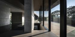 This geometric dwelling is situated amidst big rain trees either inside or outside the boundary, in a suburban area of Bangkok. Although, the location is near the urban fabric such as transport connections, it is still a friendly and peaceful neighborhood as well as a good natural environment. There are three different functions consisting of a main house, a glass pavilion and an exercise complex which are delicately organized in this charismatic setting.