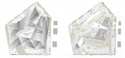Procon Building aims to associate two different functions (1) Exhibition and (2) Research. The two components of the design is integrated in [Folding] Concept surrounding the inner courtyard and the[Core] . The building mass is devided in three pieces to enlarge the surface area of the mass and the outdoor, improving connectivity and permeability of the mass. The exhibition halls, show room and museum cafe is located on the east side while research offices and workshops are located on west side enclosing the headquarters building and auditorium. The courtyard has a lineear form connecting two opposite sides of the site while enlarged in the middle to compose a gathering space enlivened with landscape elements and a reflection pool. A bridge crosses the courtyard without interrupting it connecting the east entrance and research workshops. The reflection pool , besides being a landscape element, limits the physical relation of the courtyard and headquarter while remaining the visual contact. The headquarters building which is the most dominant element in the design, defined as [Core] is reinterpreted as a sculptural element while standing on the reflection pool.