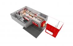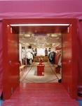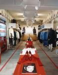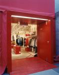 In addition to being unusual, this project appeals for its manufacturing process – a breakthrough from the traditional store design codes. To comply with the function it houses, this architecture uses an appropriate design language – that of textile creation. In the same way as a seamstress would reconstruct a piece of clothing from a pattern, the contractors were provided with a facade pattern of the tent. The waxed canvas is tensioned with natural leather straps and spanned on a metal framework. The base is weighted down with sandbags. To enter the tent, you walk through a timber entrance lobby and then discover an interior space with ecru walls.