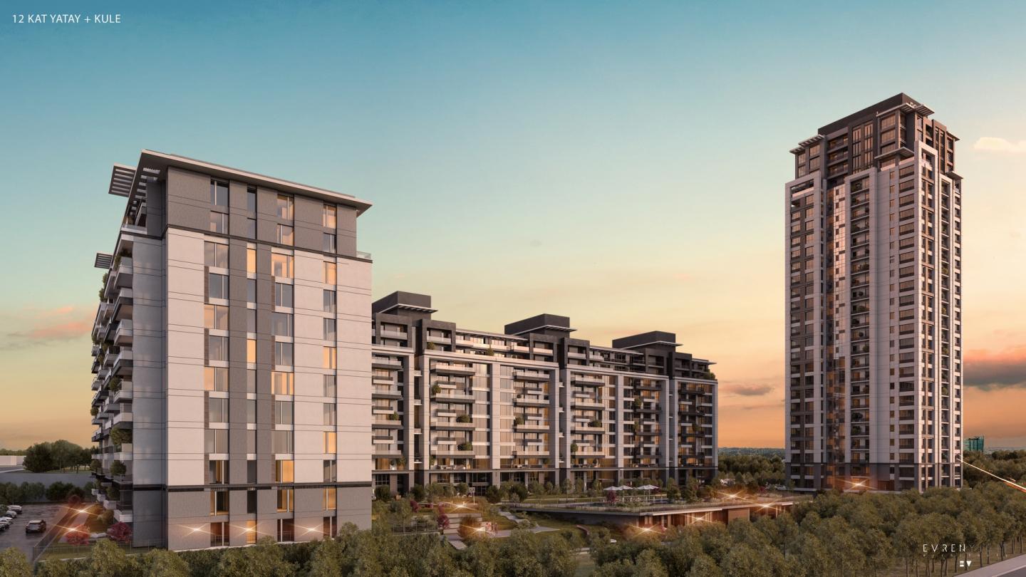 The project is designed with the aim of combination high-rise and low-rise blocks. Two horizontal blocks are faced with one high-rise tower. Orientations and placement of masses are planned according to topography and sun movement. Center of these three blocks is planned as an open socialization area. Topography difference of site is turned to advantage, and recreational facility is located at that level difference by this way its roof is used as a continuation of landscape.