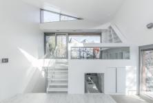 By skipfloor scheme(split level scheme) which has been applied to sloped hillside, interior spaces are small area but having interesting experience of space.